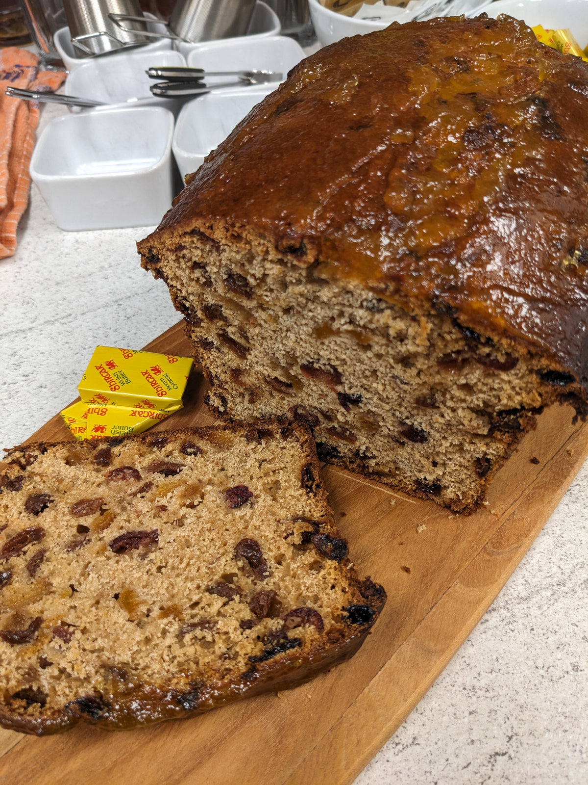 Bara-brith fruit cake is a classic Welsh tea time treat. We soak our fruit in tea overnight to make it extra moist